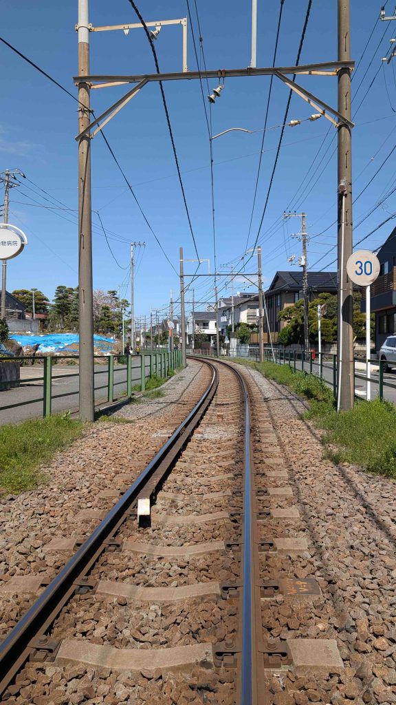 江ノ電の踏切を渡って、